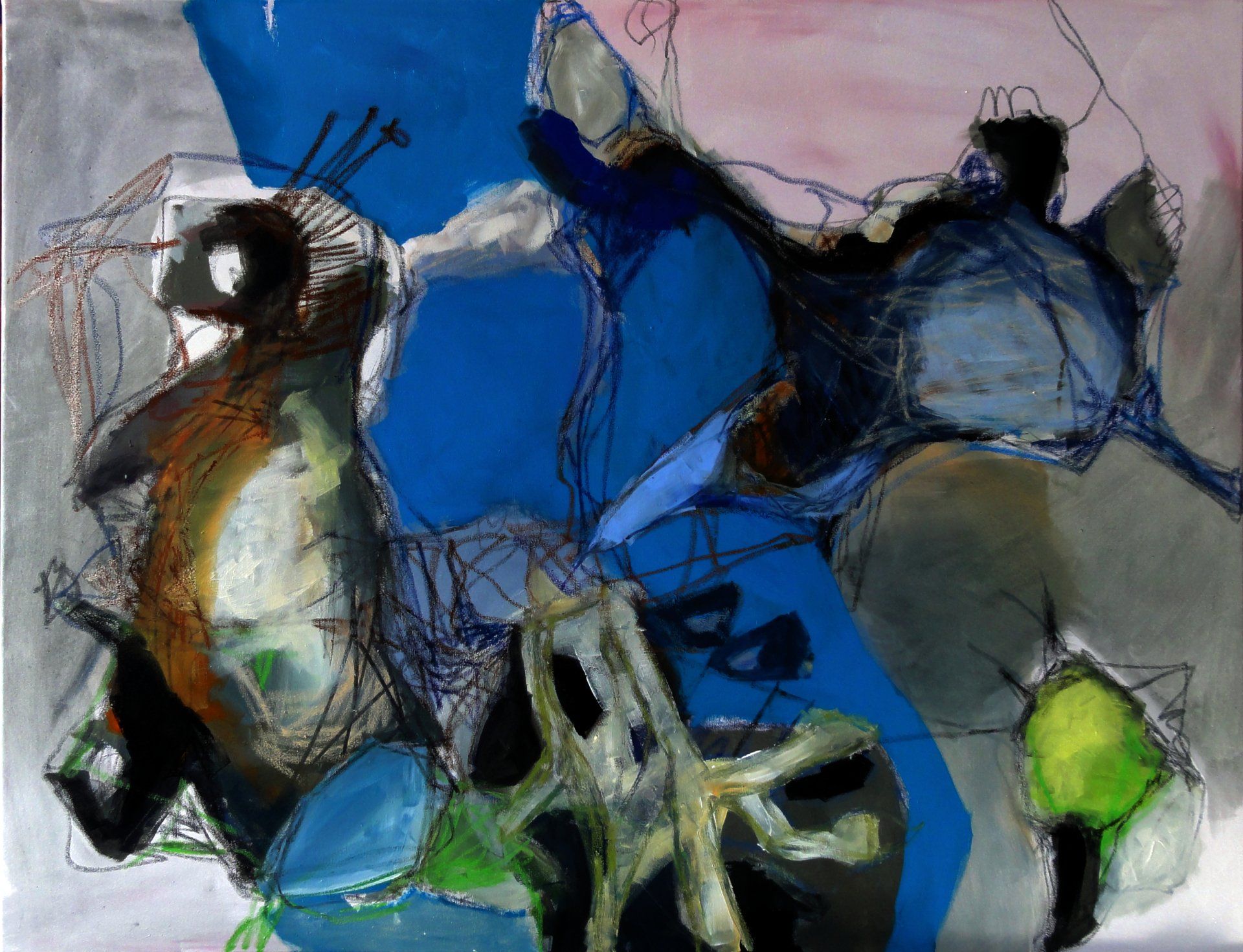 Es spielt eine entscheidende Rolle, ob ein Bild mit einer Linie oder einer Farbflächen begonnen wird, welche Ebene überlagert wird, oder ob am Anfang einer Bildfindung die reine Form steht. Die Linie als wichtiges Element dient der Begrenzung und Verbindung der einzelnen Objekte. Sie stellt aber gleichwohl ein Element mit einem eigenen Ausdruckswert dar. Ob dick oder dünn, ob plan oder als Relief aufgetragen, es ergibt sich immer ein neuer Ausdruck.
